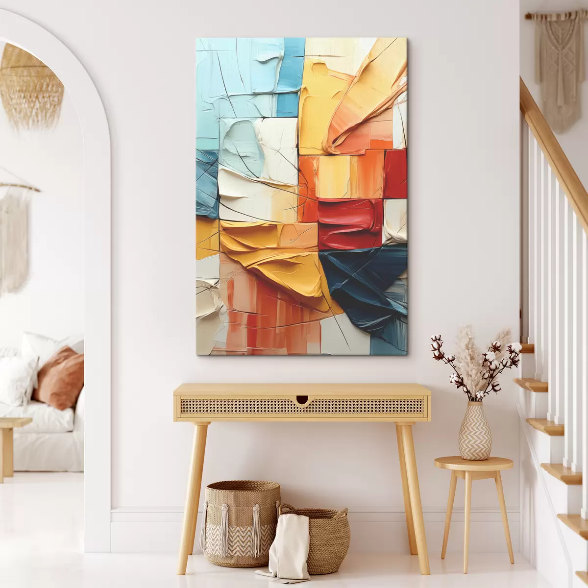 Paveikslas Ryškių dažų gabalėliai su įtrūkimais, kvadratėliais, kubizmo tapyba Nr s39196