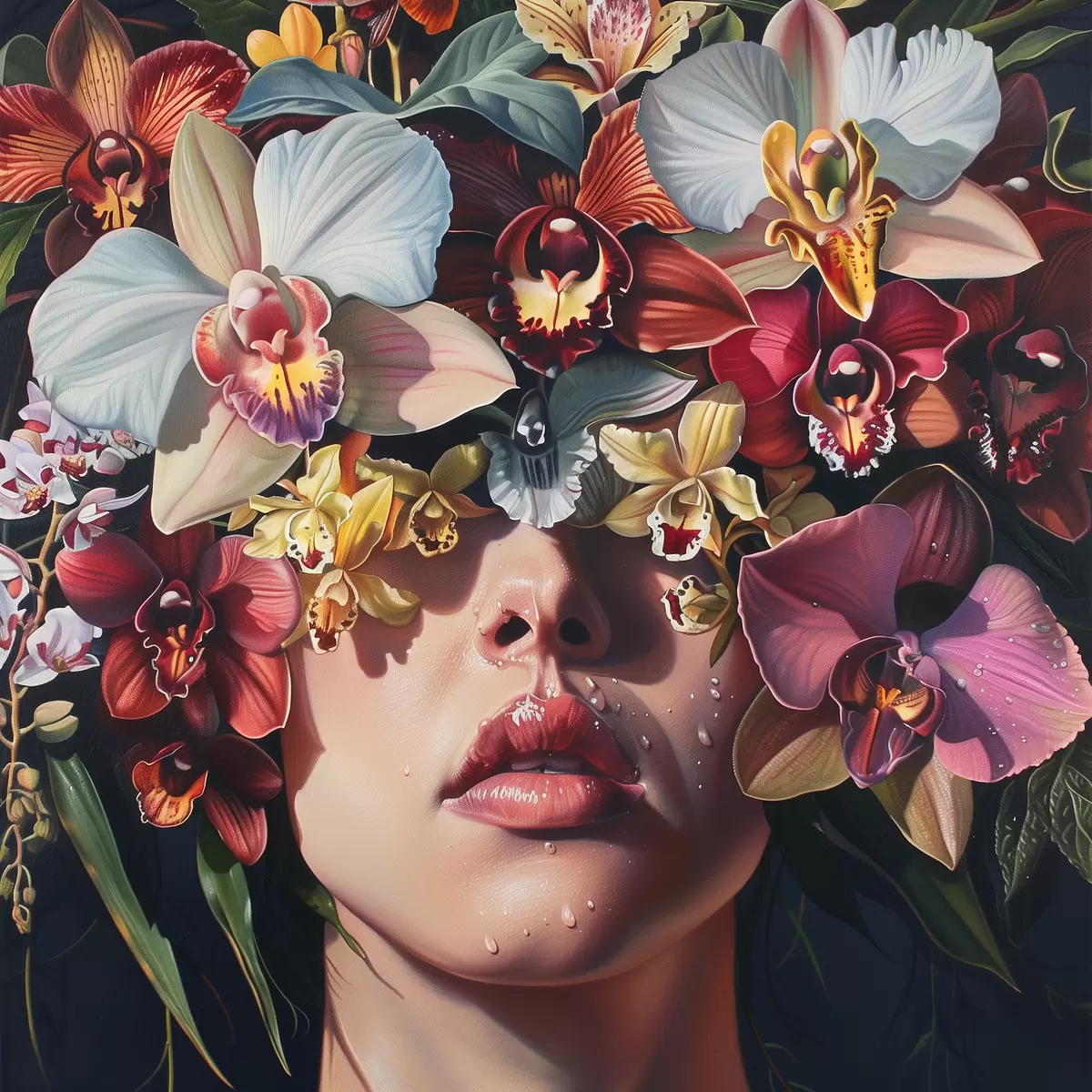 Paveikslas Mergina ir didelės orchidėjos Nr s39229