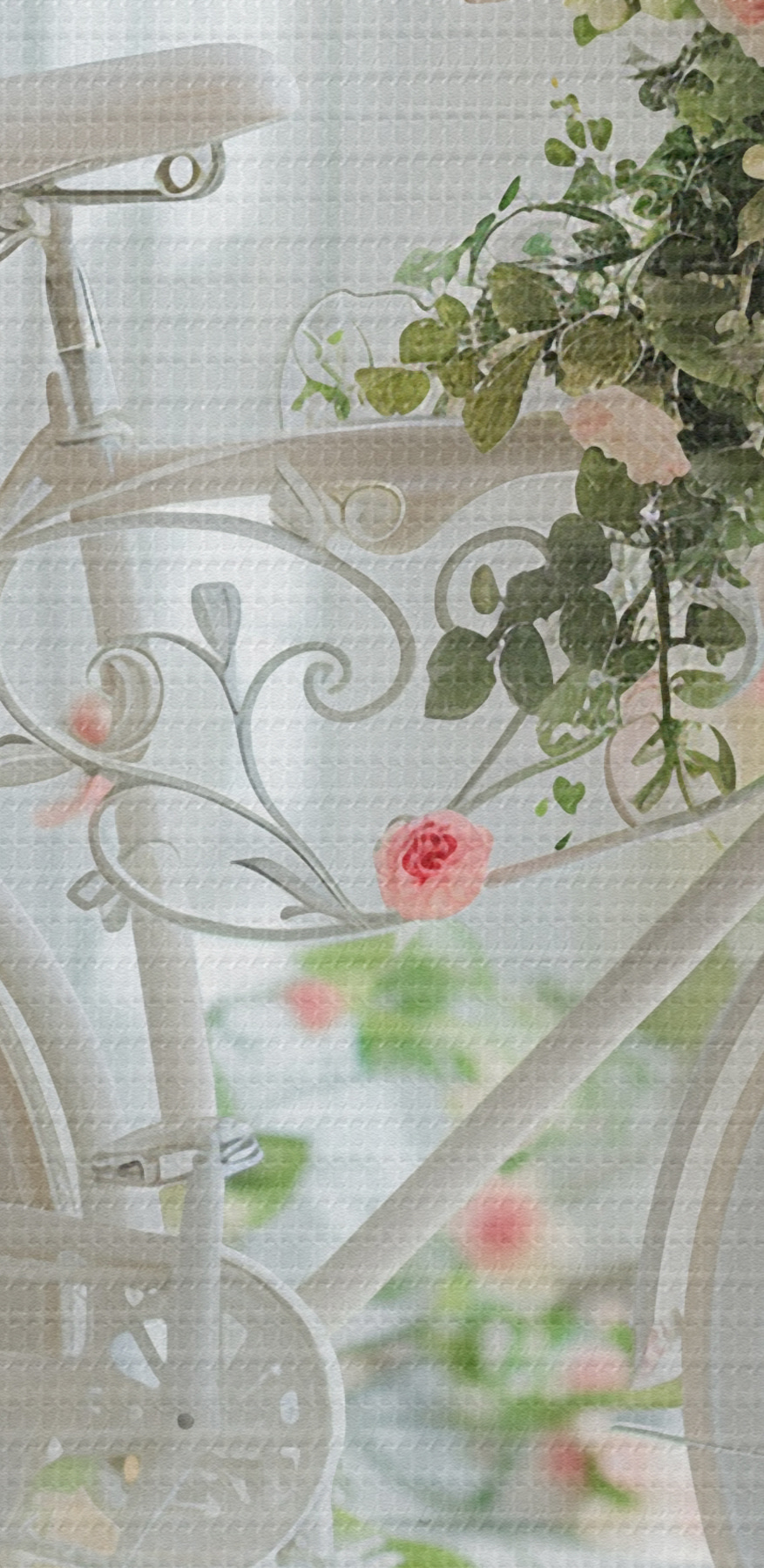 Paveikslas Baltas Provanso stiliaus dviratis su gėlių krepšeliu Nr s39243