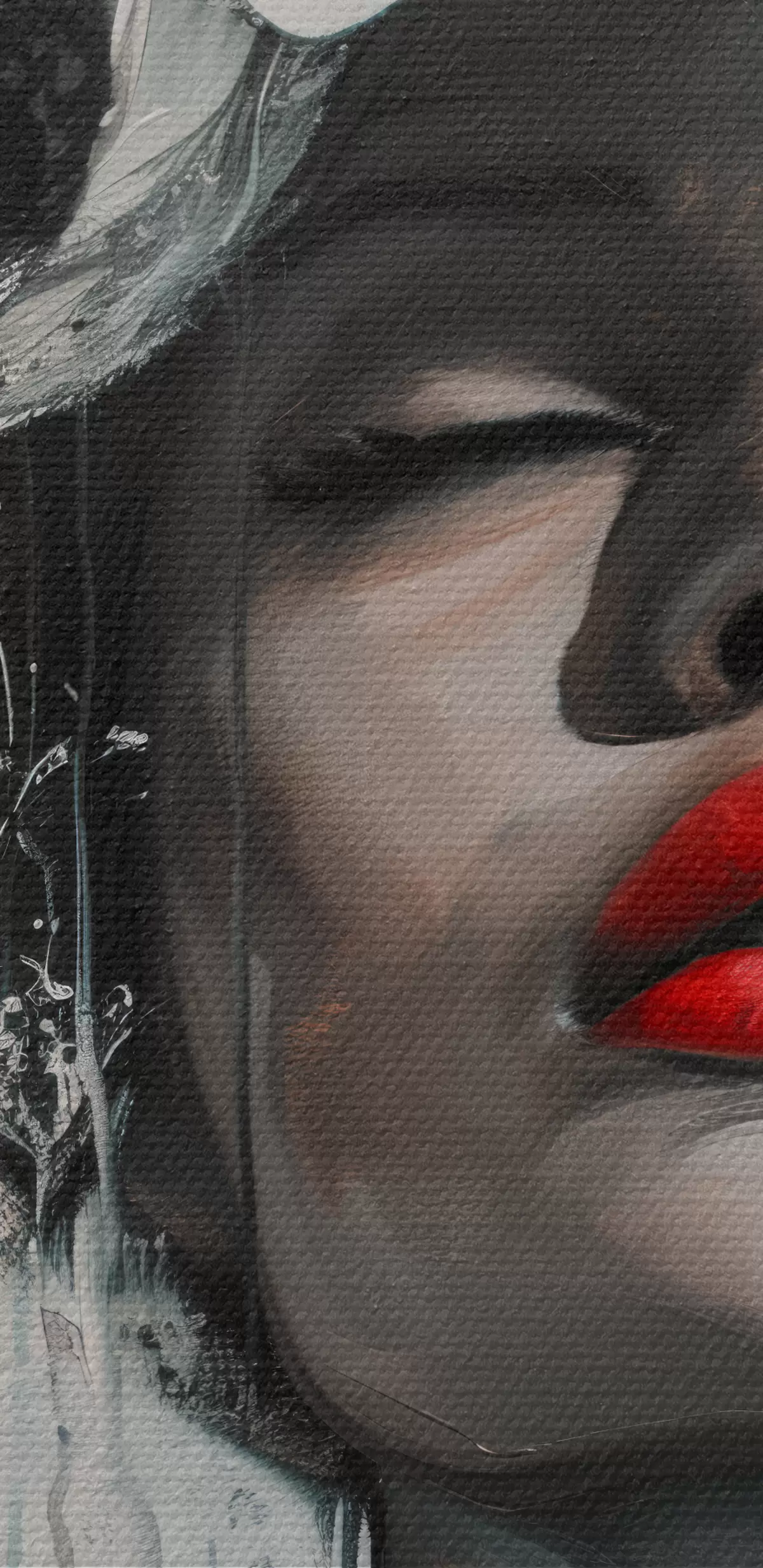 Paveikslas Moters portretas su gėlėmis plaukuose ir raudonomis lūpomis Nr s39253