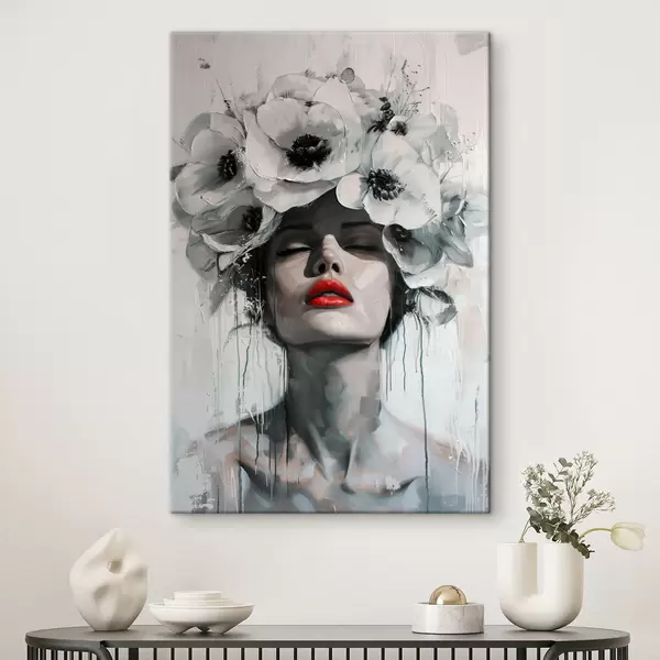 Paveikslas Moters portretas su gėlėmis plaukuose ir raudonomis lūpomis Nr s39253