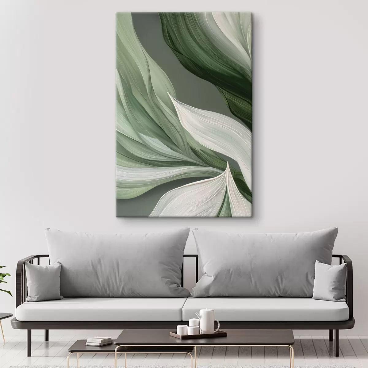 Paveikslas didelės apimties abstraktus šydas baltos ir žalios spalvos Nr s39327