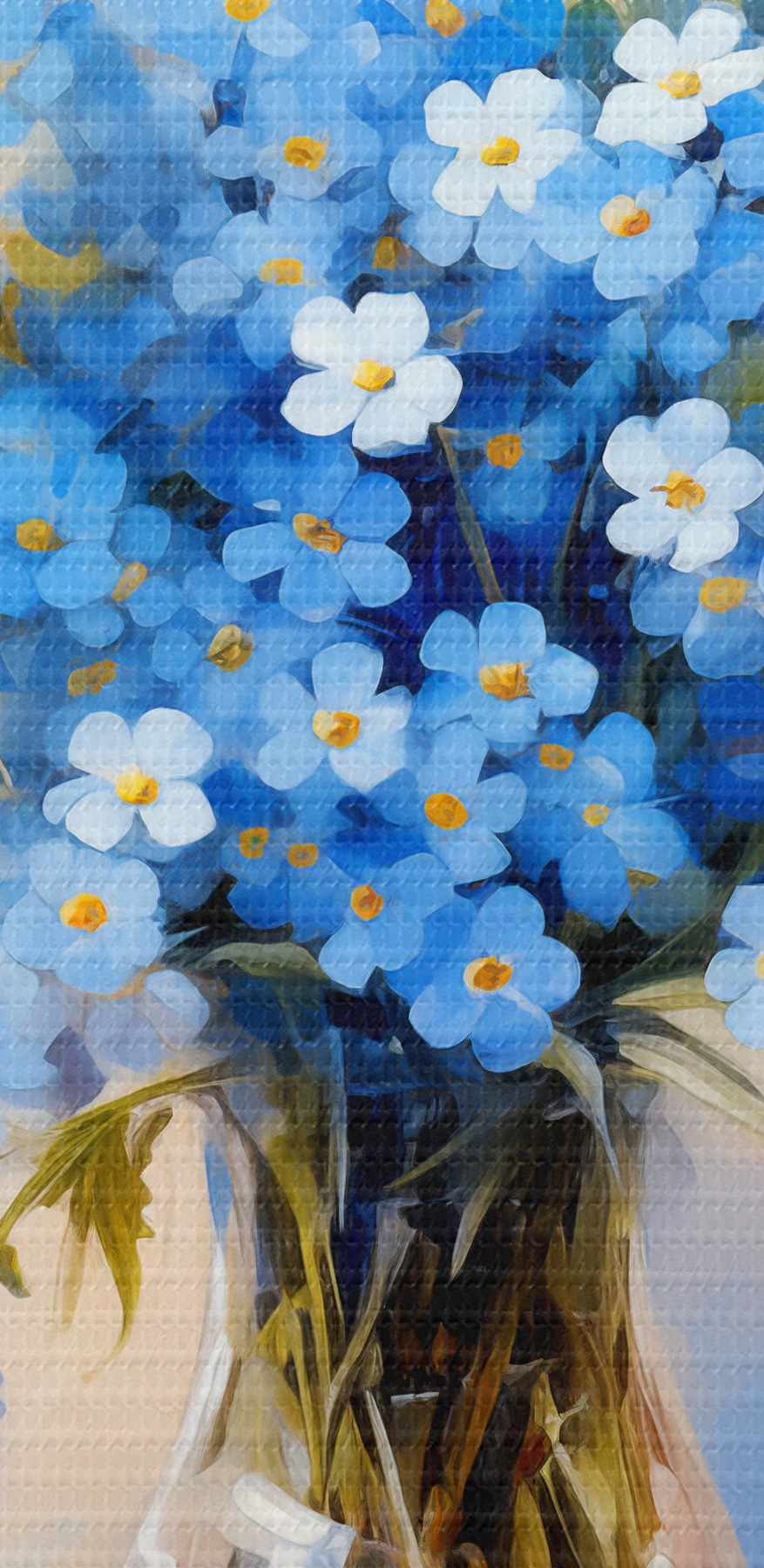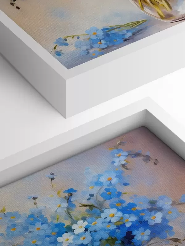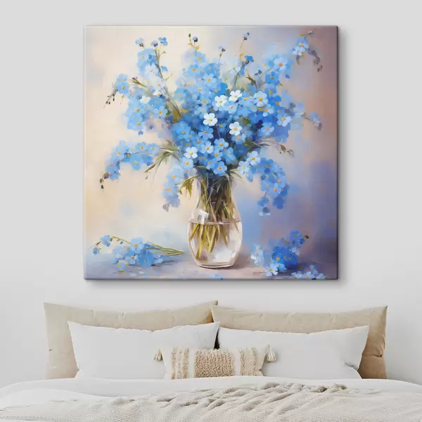 Paveikslas Mėlynų lauko gėlių puokštė stikliniame dekanterio aliejiniame paveiksle Nr s39331