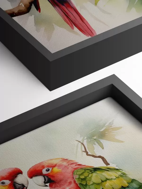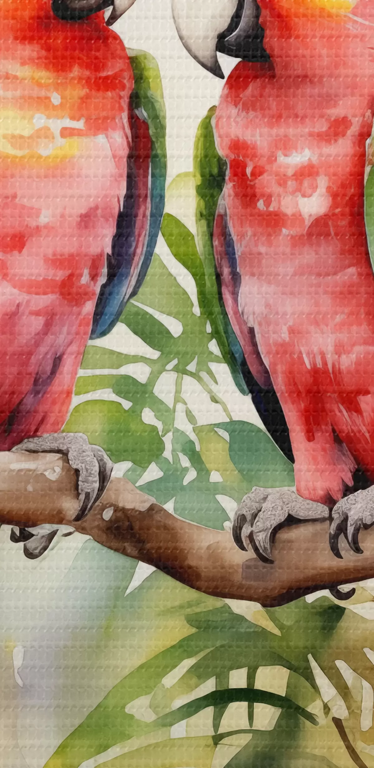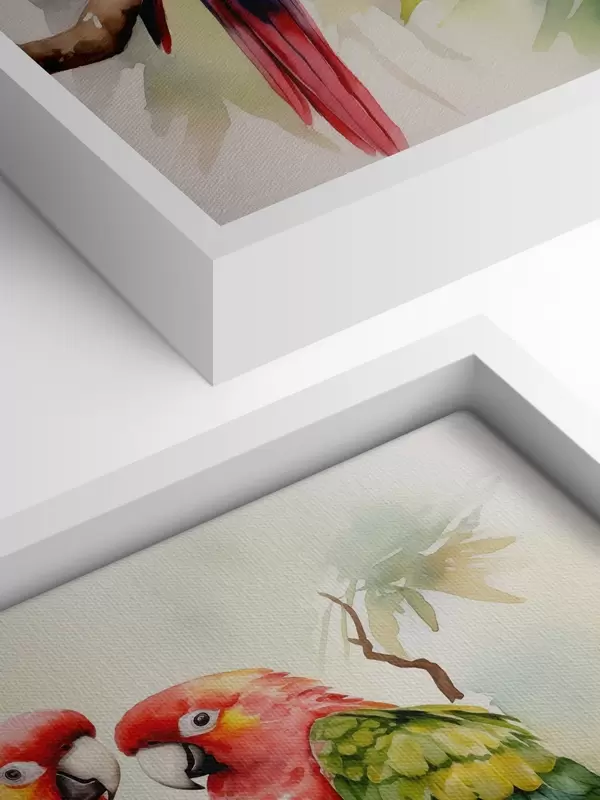 Paveikslas Dvi ryškios aros papūgos, sėdinčios ant vienos šakos, akvarelė Nr s39333