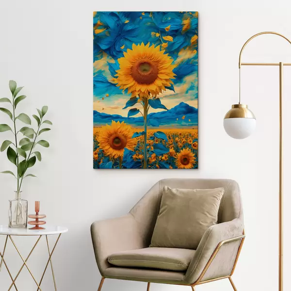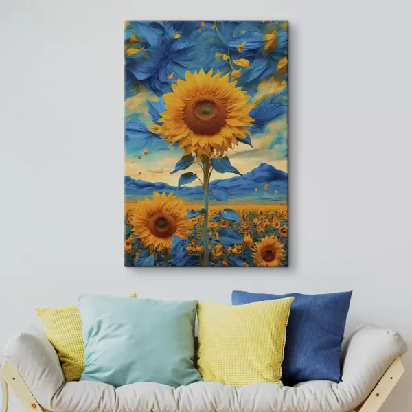 Paveikslas Saulėgrąžų laukas virš abstraktaus dangaus Nr s39367