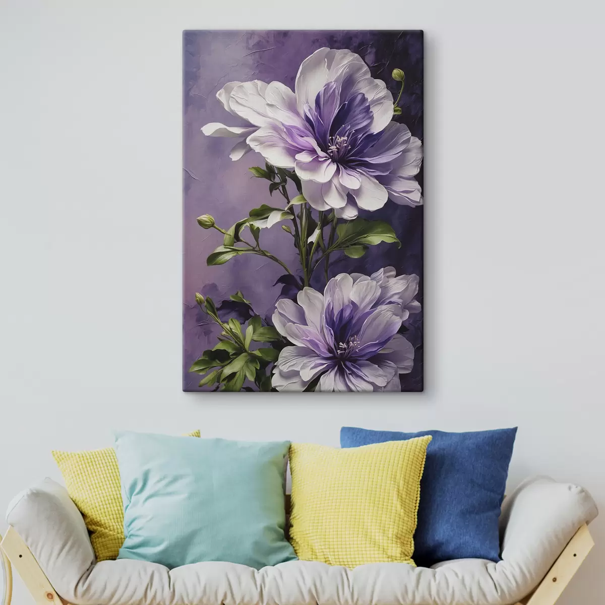 Paveikslas Violetinės gėlės purpuriniame fone Nr s39368