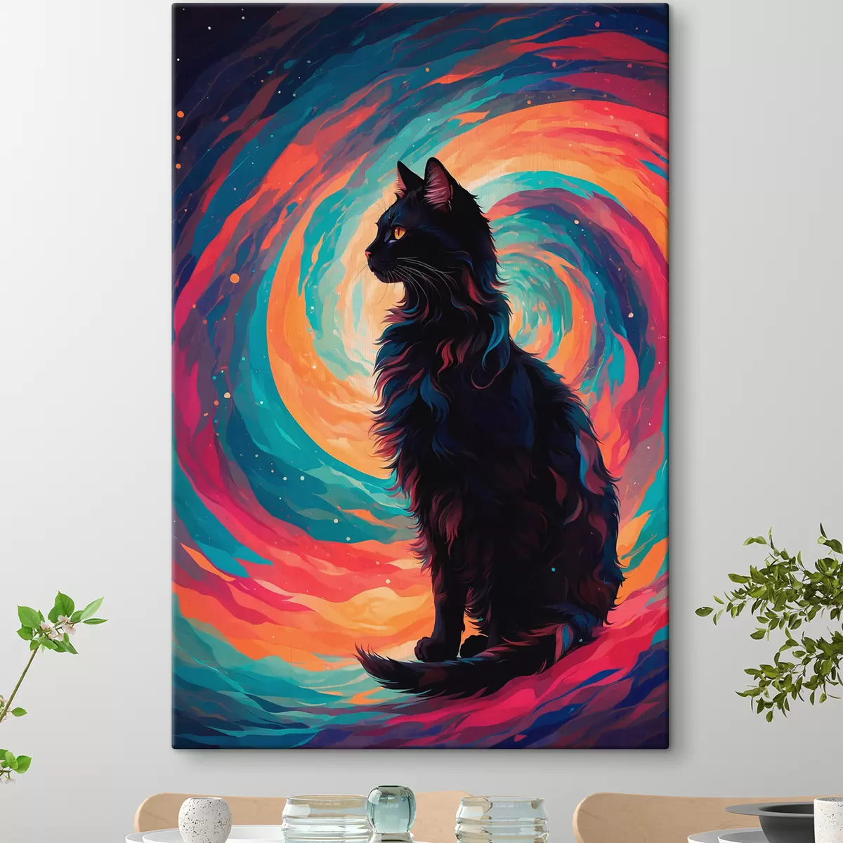 Paveikslas Juoda katė erdvės fone Nr s39370