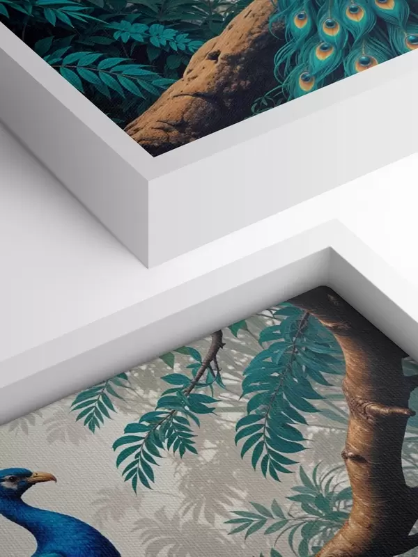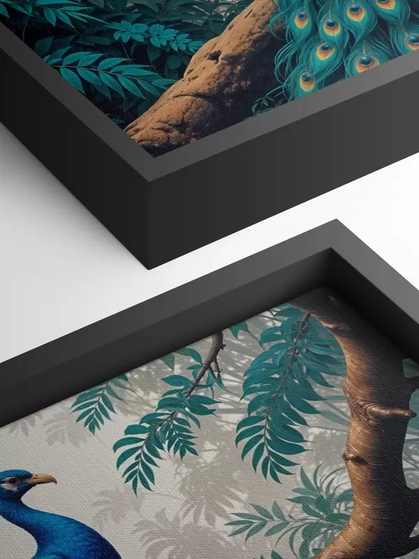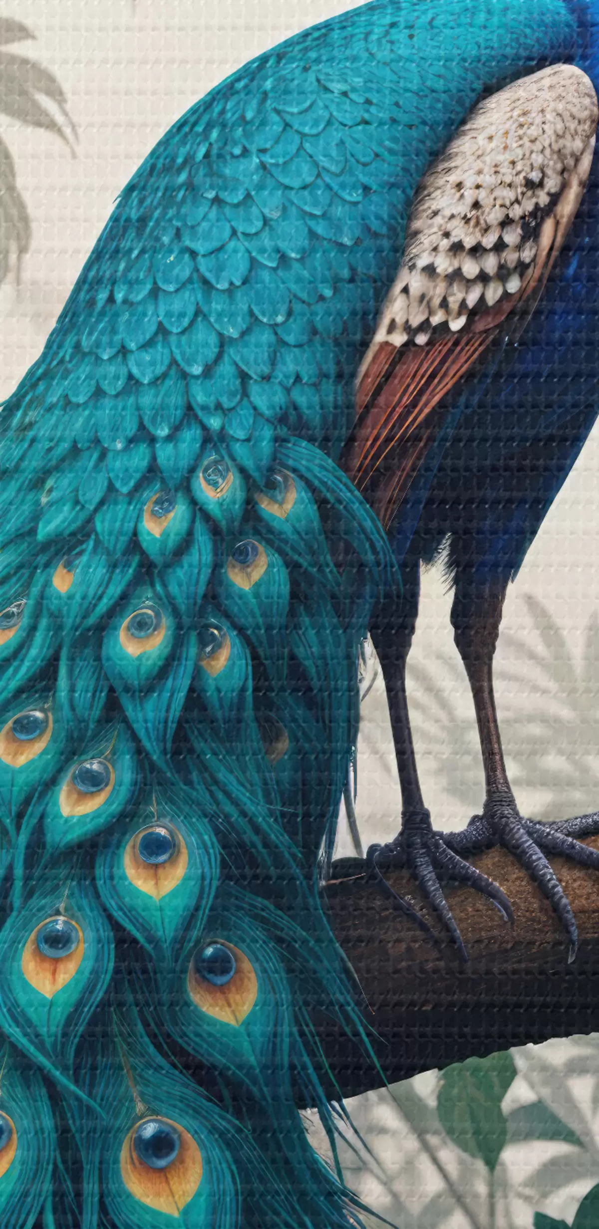 Paveikslas Ryškus mėlynas povas, tupintis ant medžio šakos vešliame atogrąžų miške Nr s39401
