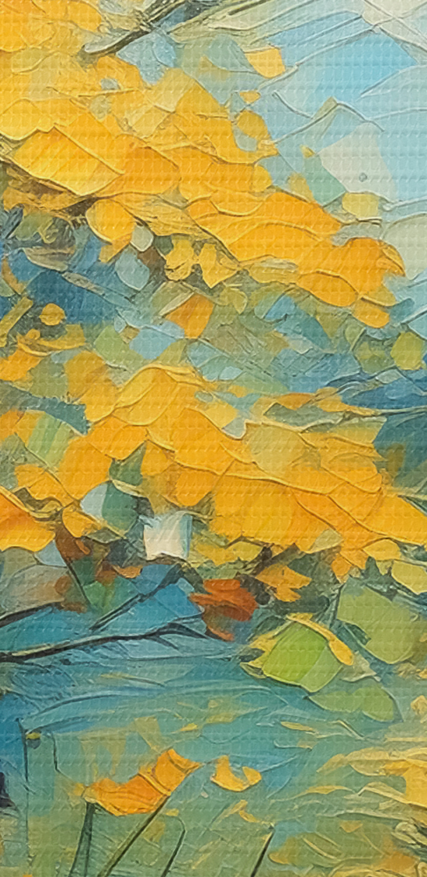 Paveikslas Medis geltonais žiedais, gamtos peizažas, aliejinė tapyba, ryškūs teptuko potėpiai, vasara Nr s39415