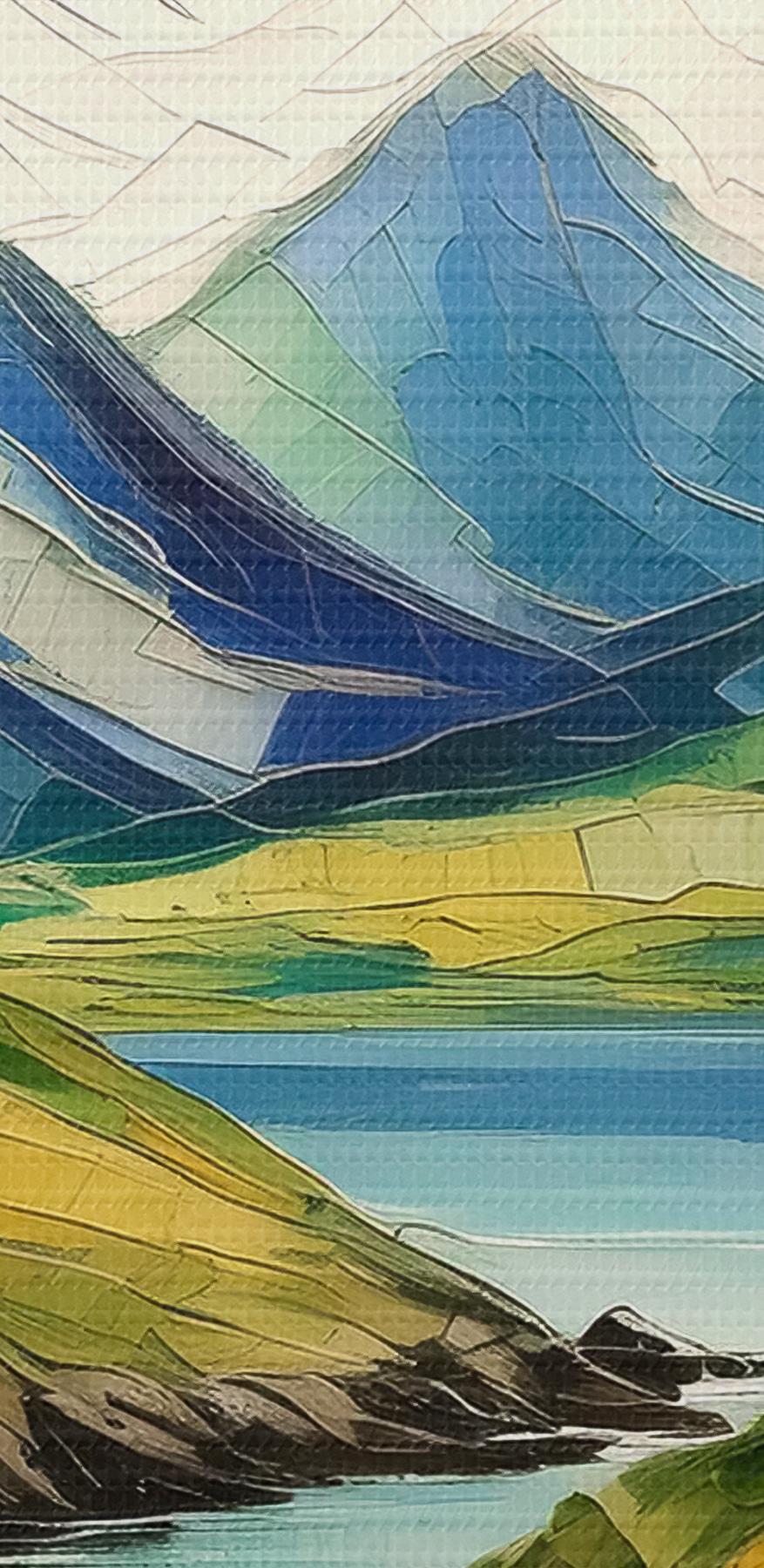 Paveikslas Norvegijos peizažas, žaluma, gražūs kalnai, namelis, gamta, akrilo menas Nr s39422