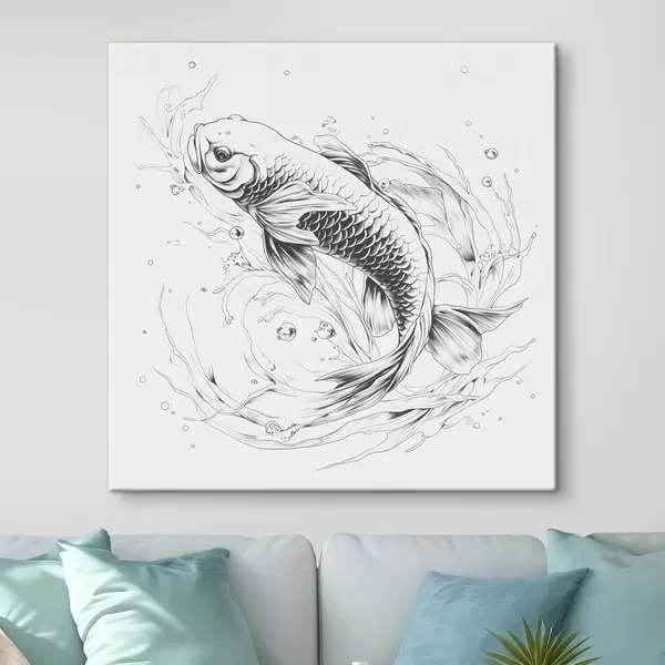Paveikslas Koi žuvies vienspalvis linijos piešinys Nr s39433