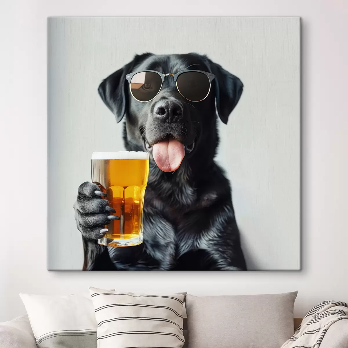 Paveikslas Juodojo labradoro portretas su akiniais nuo saulės ir laikant pintą alaus, žiūrinčio tiesiai į fotoaparatą Nr s39470
