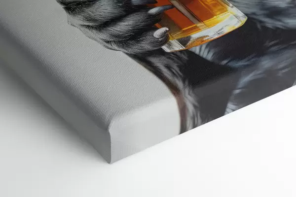 Paveikslas Juodojo labradoro portretas su akiniais nuo saulės ir laikant pintą alaus, žiūrinčio tiesiai į fotoaparatą Nr s39470