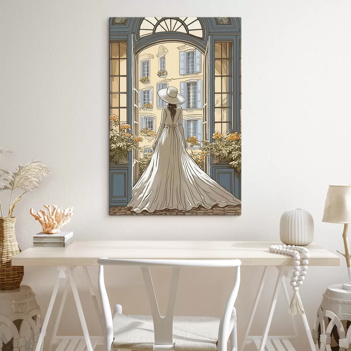 Paveikslas prie lango merginos balta suknele siluetas Nr s39479