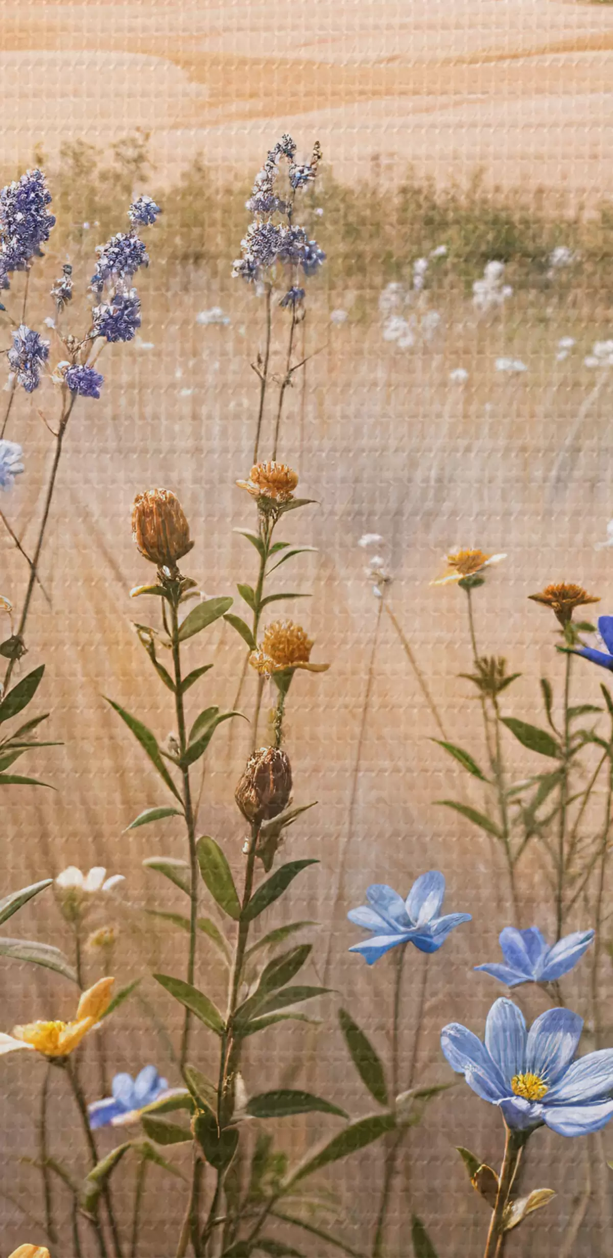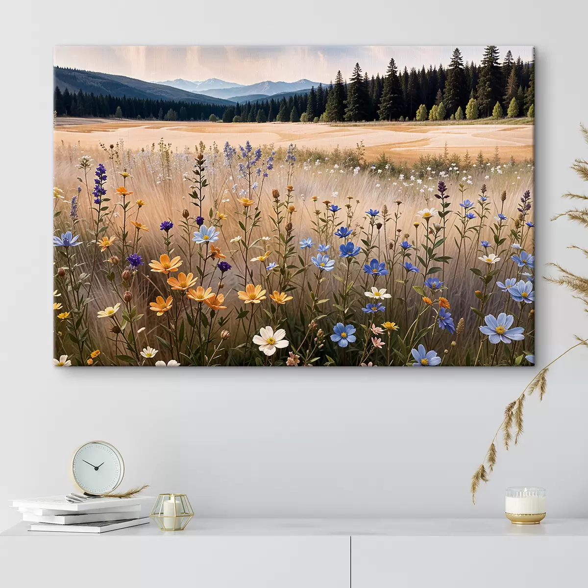 Paveikslas Spalvingų lauko gėlių laukas pirmame plane, su ežeru ir kalnais fone Nr s39502