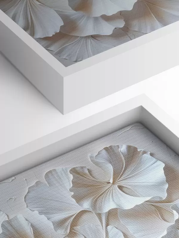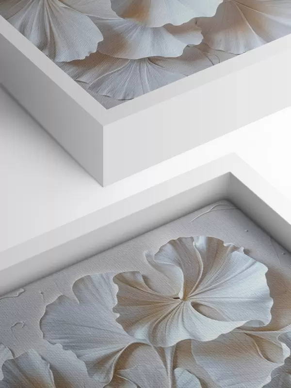 Paveikslas Subtiliai baltos gėlės, išdėstytos natūraliu, organišku raštu šviesiame fone Nr s39510