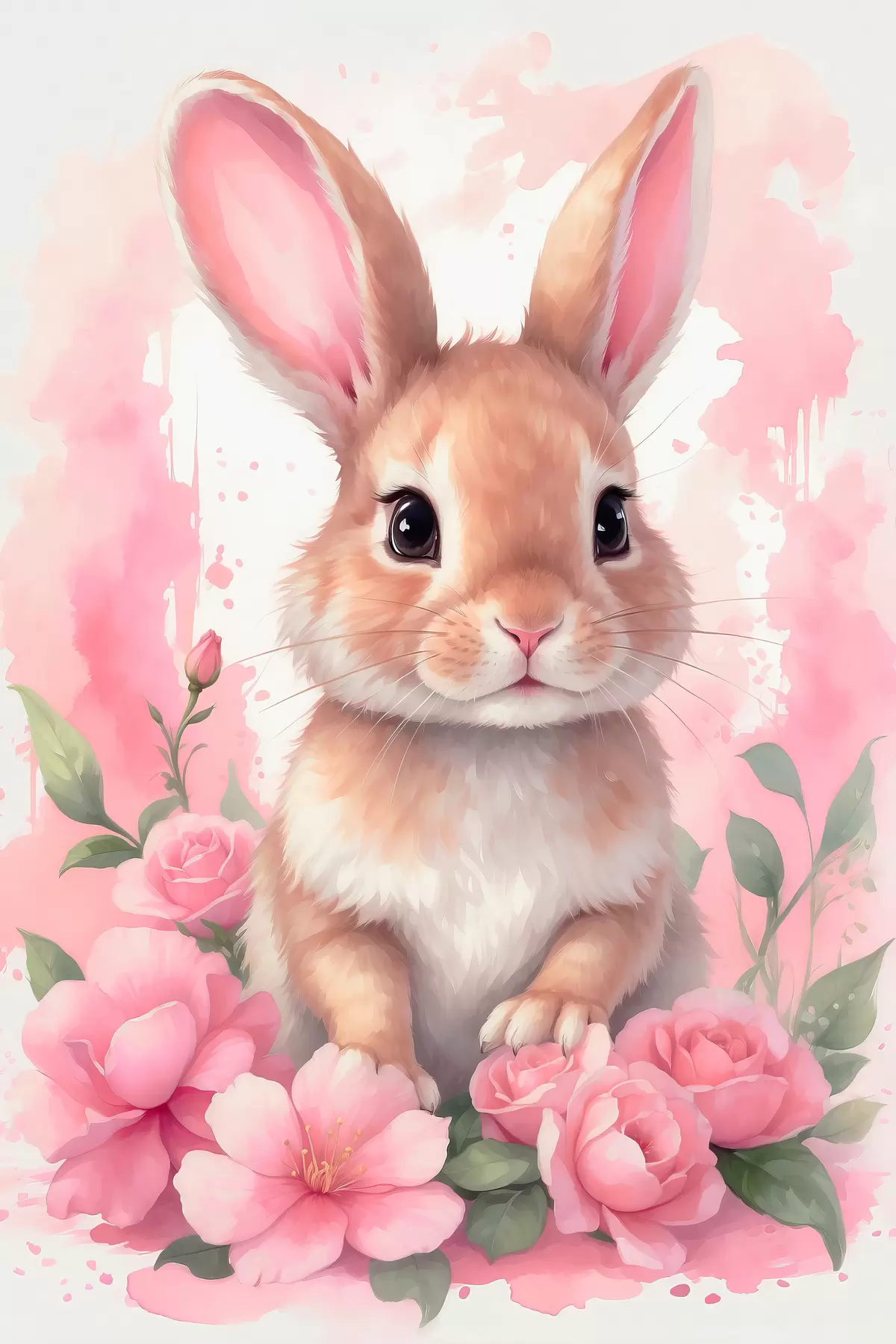 Paveikslas Mielas kiškis rožinėmis gėlėmis Nr s39559