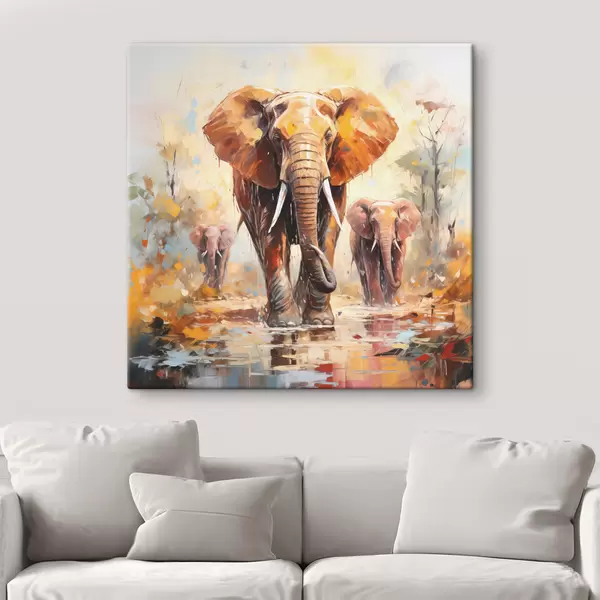 Paveikslas Dramblių pulkas tarp savanos, aliejinė tapyba, abstraktus menas Nr s39573