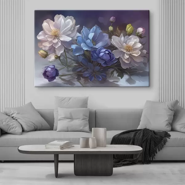Paveikslas Baltos ir mėlynos gėlės neryškiame fone Nr s39603