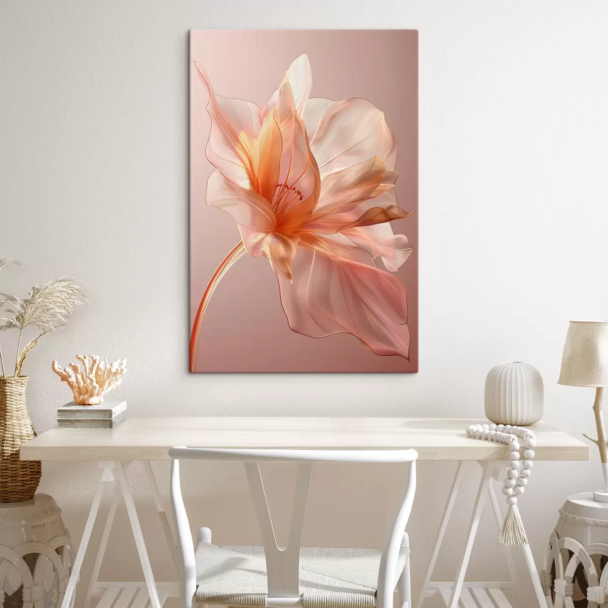 Paveikslas Persiko gėlės žiedlapis rožiniame fone su sklandančiomis linijomis, minimalizmu ir subtiliomis detalėmis Nr s39631
