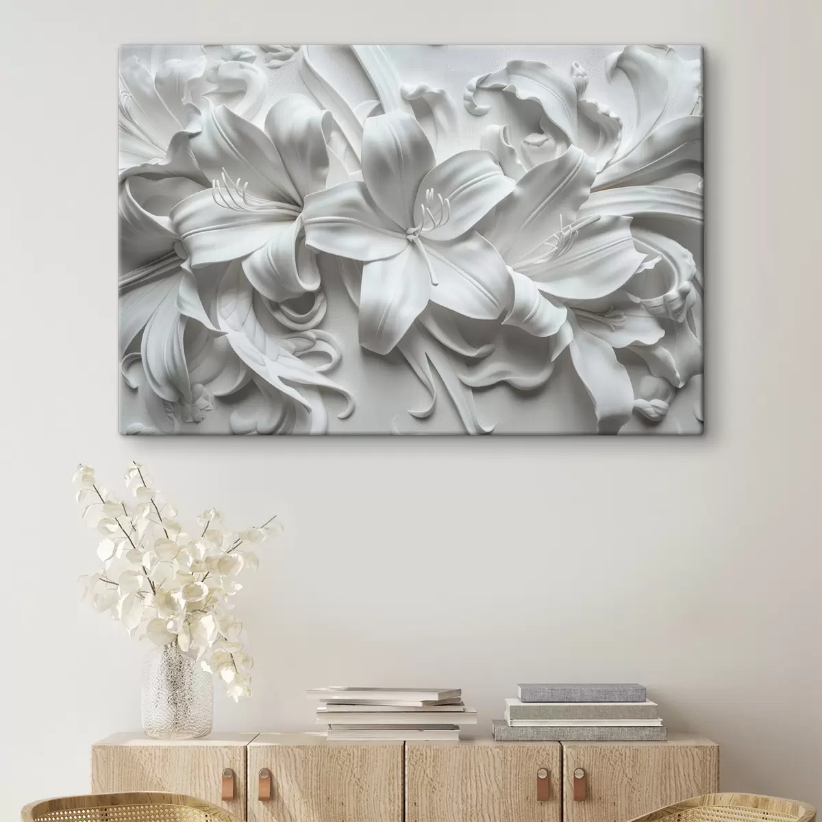 Paveikslas Baltas 3D reljefas iš skulptūrinių lelijų Nr s39654
