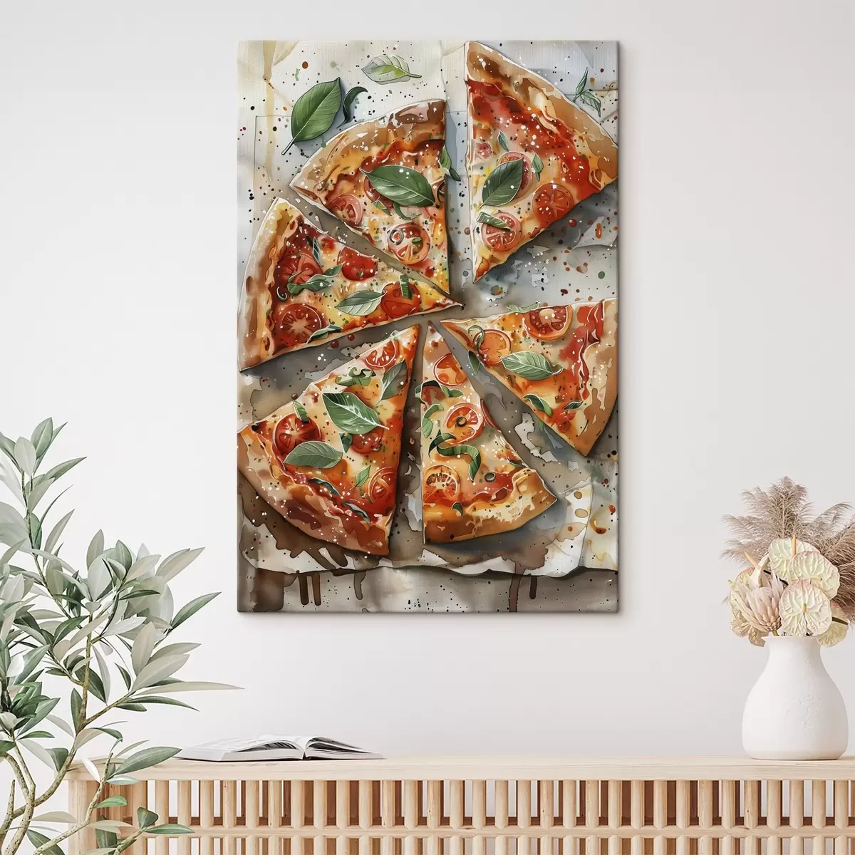 Paveikslas Gardi itališka pica, akvarelės maisto menas, margarita, pomidorai Nr s39703