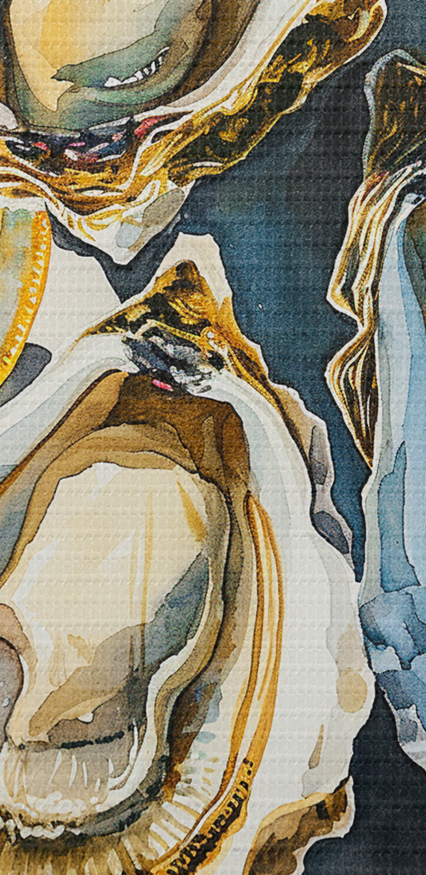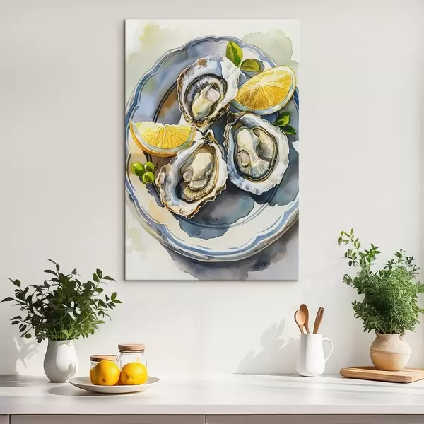 Paveikslas Elegantiškos austrės lėkštėje, akvarelė, citrinos, natūralios spalvos, Viduržemio jūros Nr s39711