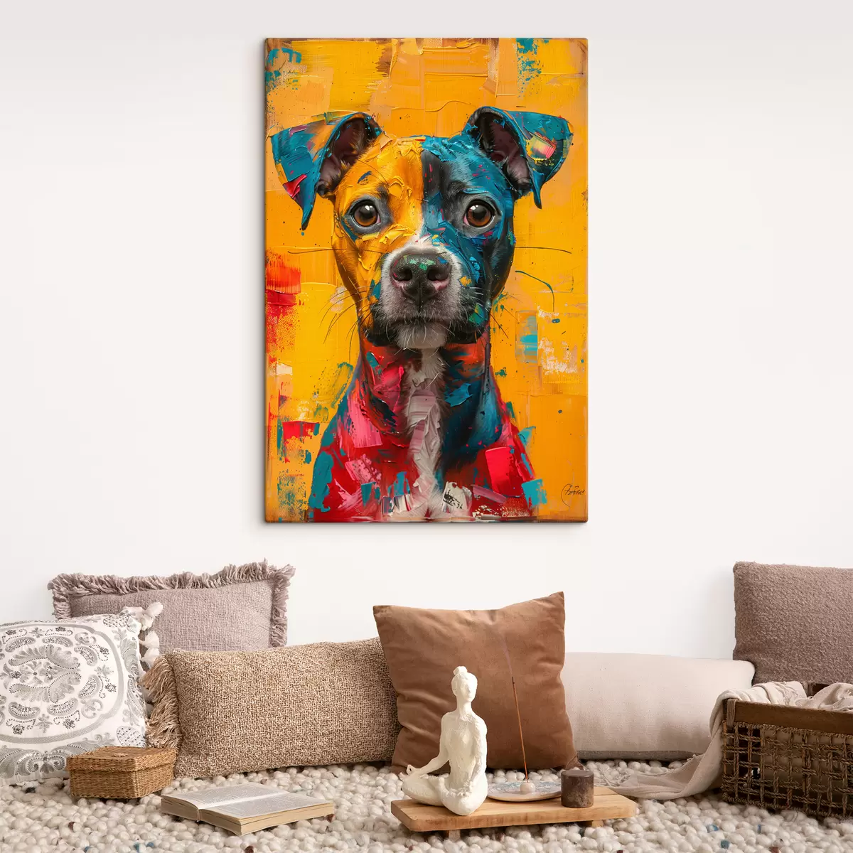 Paveikslas Pitbullio portretas su geltonais ir mėlynais aliejaus teptuko potėpiais Nr s39722