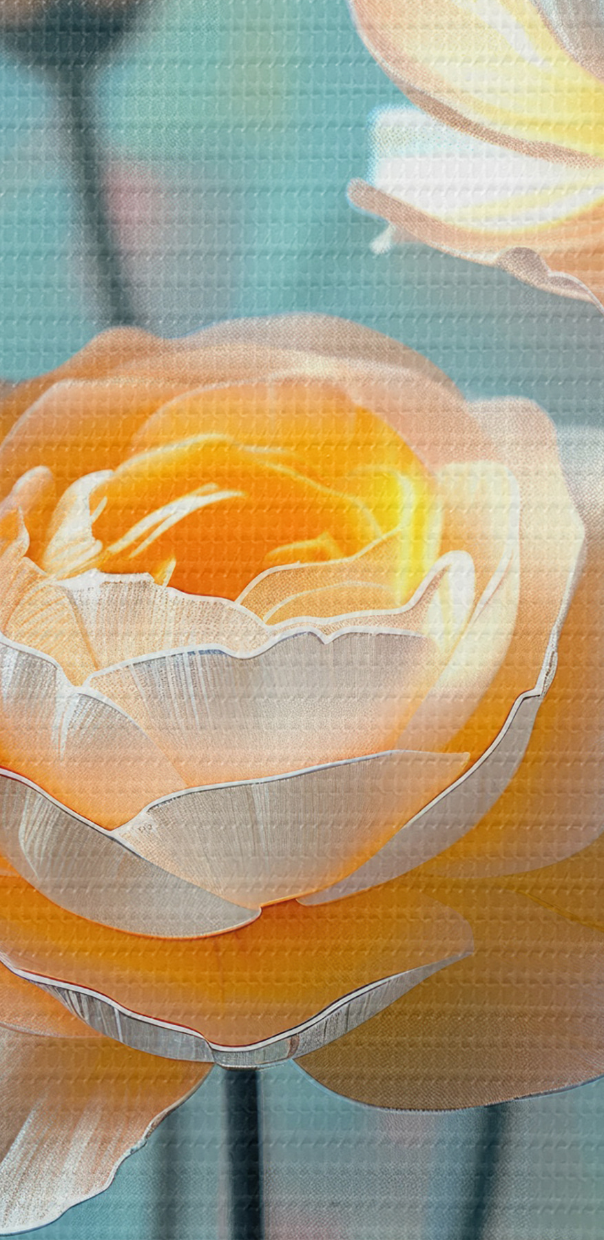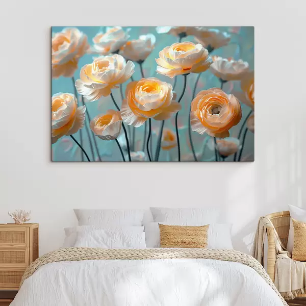 Paveikslas Švelnūs balti ir oranžiniai bijūnai mėlyname fone Nr s39753