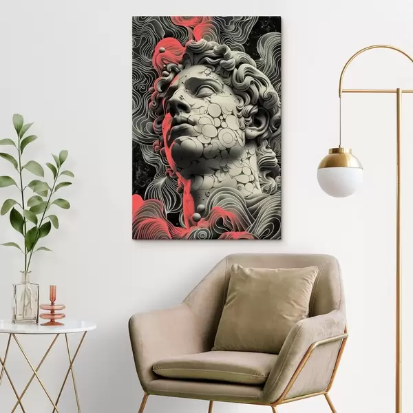 Paveikslas Juodai balta linijinė graikų dievo Apolono galvos iliustracija popmeno stiliumi Nr s39763