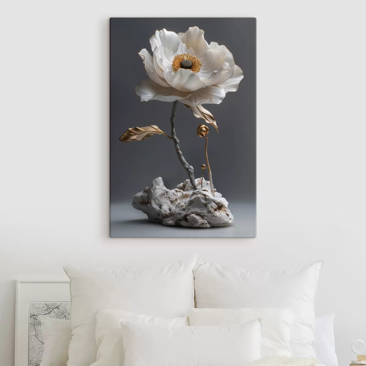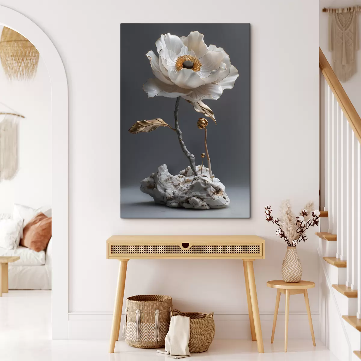 Paveikslas Grakštus baltas lotosas, žydintis iš akmens Nr s39765