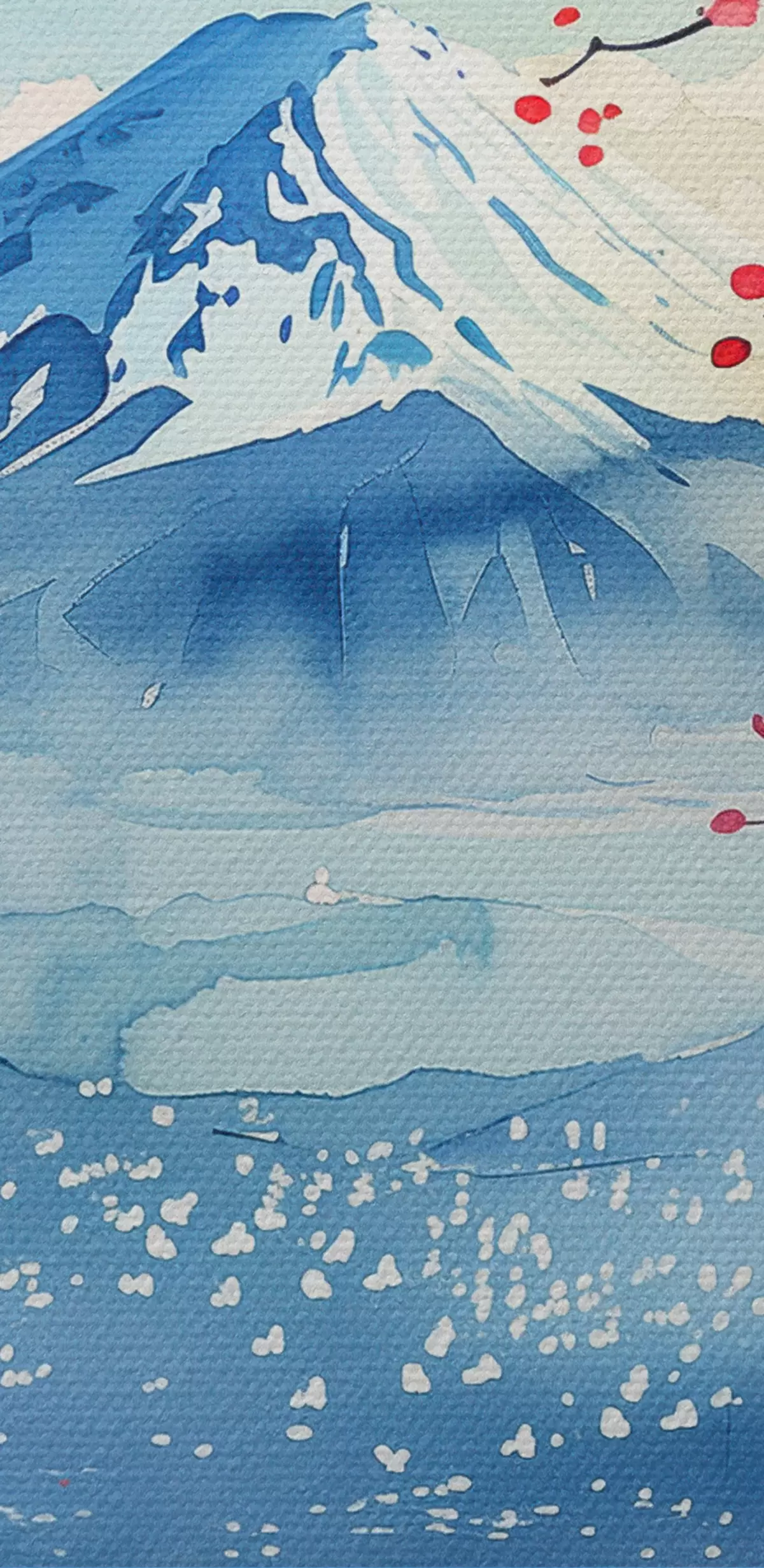 Paveikslas Fudži kalnų peizažas, rytietiška gamta, vyšnios, saulėlydis Nr s39775