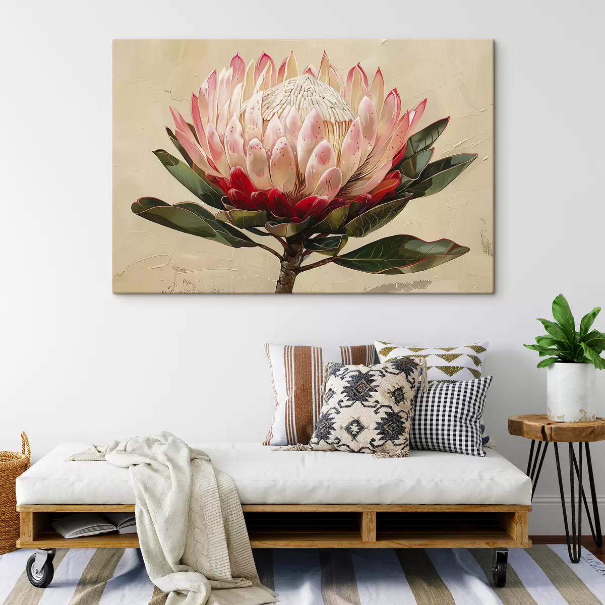 Paveikslas Protea gėlė, akrilo piešinys, gėlių, švelnios natūralios spalvos Nr s39780