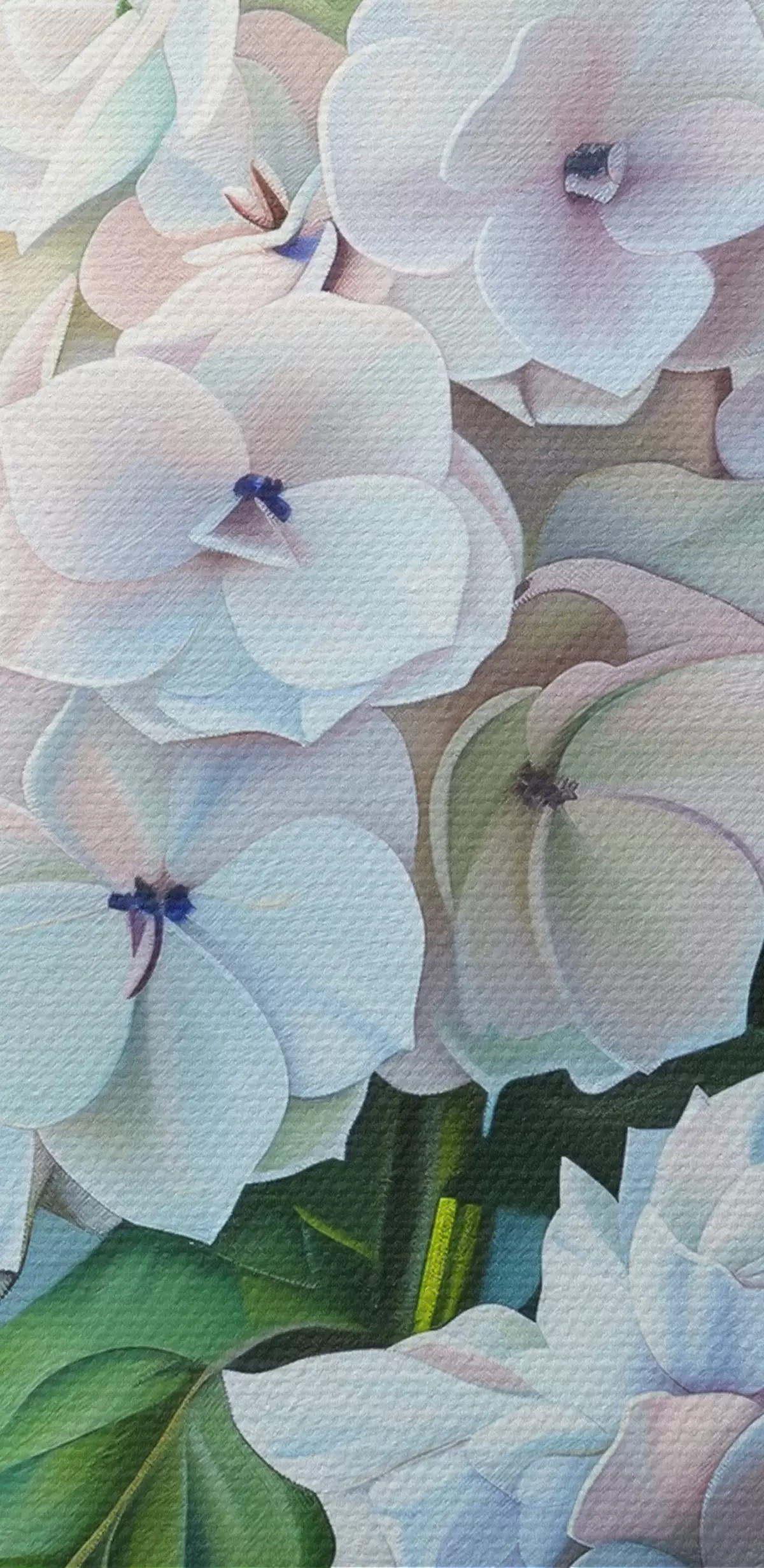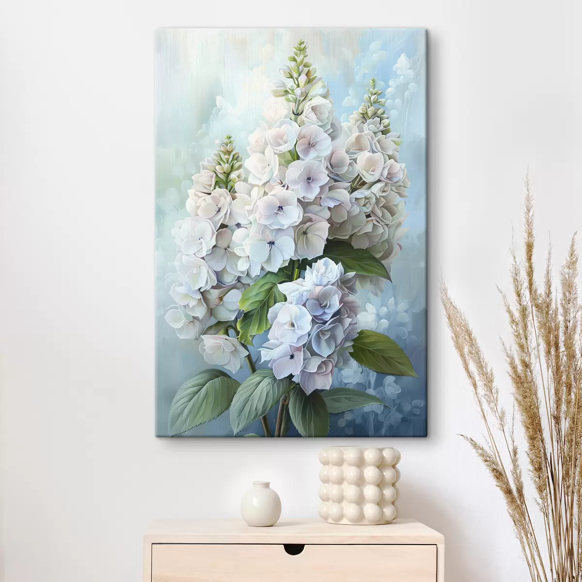 Paveikslas Violetinė hortenzijos gėlė, švelnios natūralios spalvos, piešinys akvarele Nr s39783