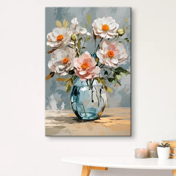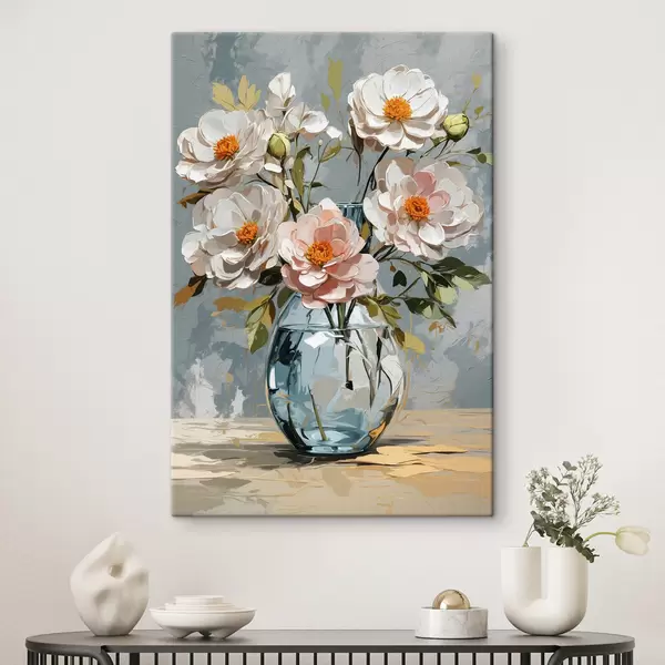 Paveikslas Baltos gėlės skaidrioje vazoje Nr s39850