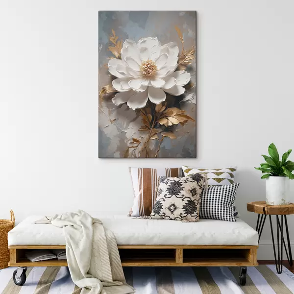 Paveikslas Balta gėlė su stiebais abstrakčiame fone Nr s39865