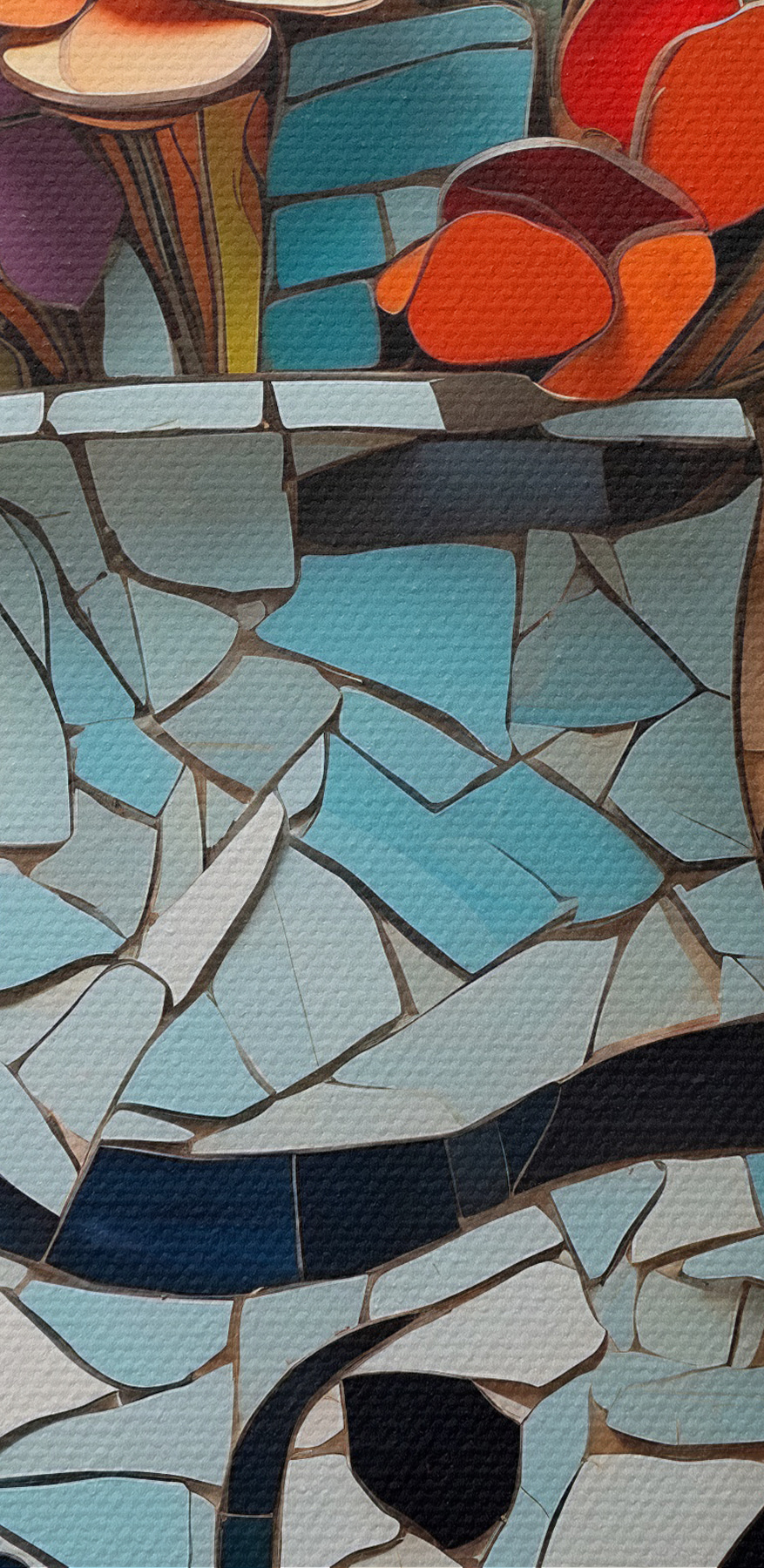 Paveikslas Mozaikinio stiliaus vaza su gėlėmis Nr s39867
