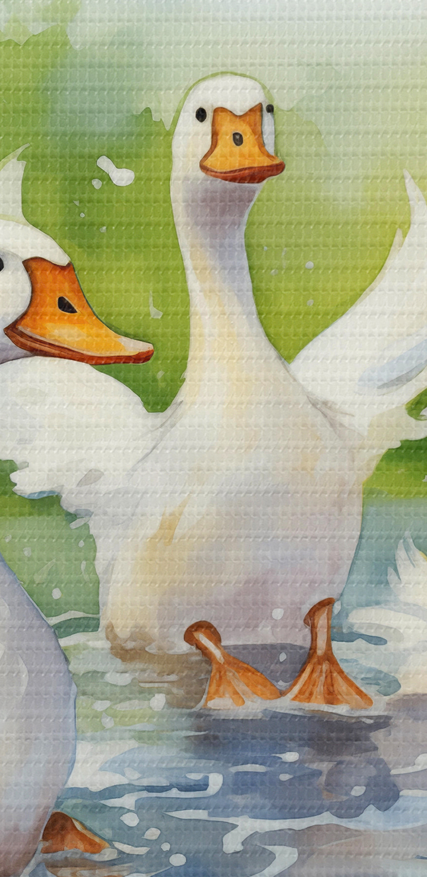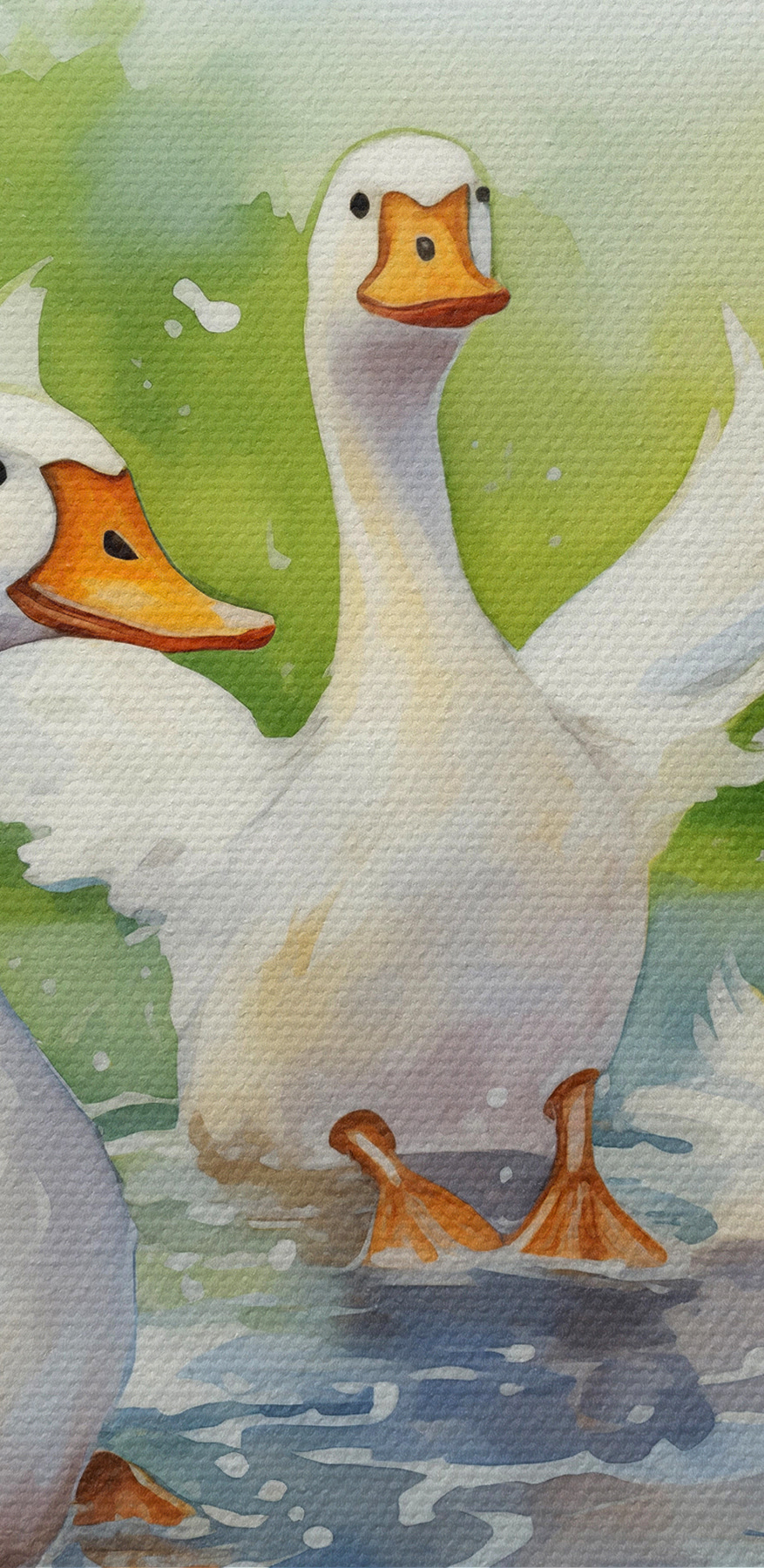 Paveikslas Baltosios žąsys maudosi tvenkinyje akvarele Nr s39939