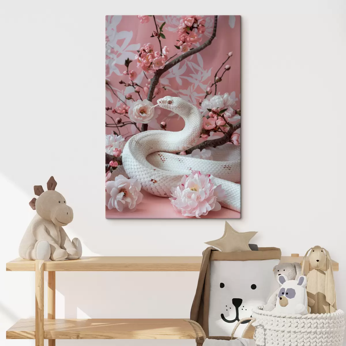 Paveikslas Balta gyvatė ir rožinės gėlės Nr s39941