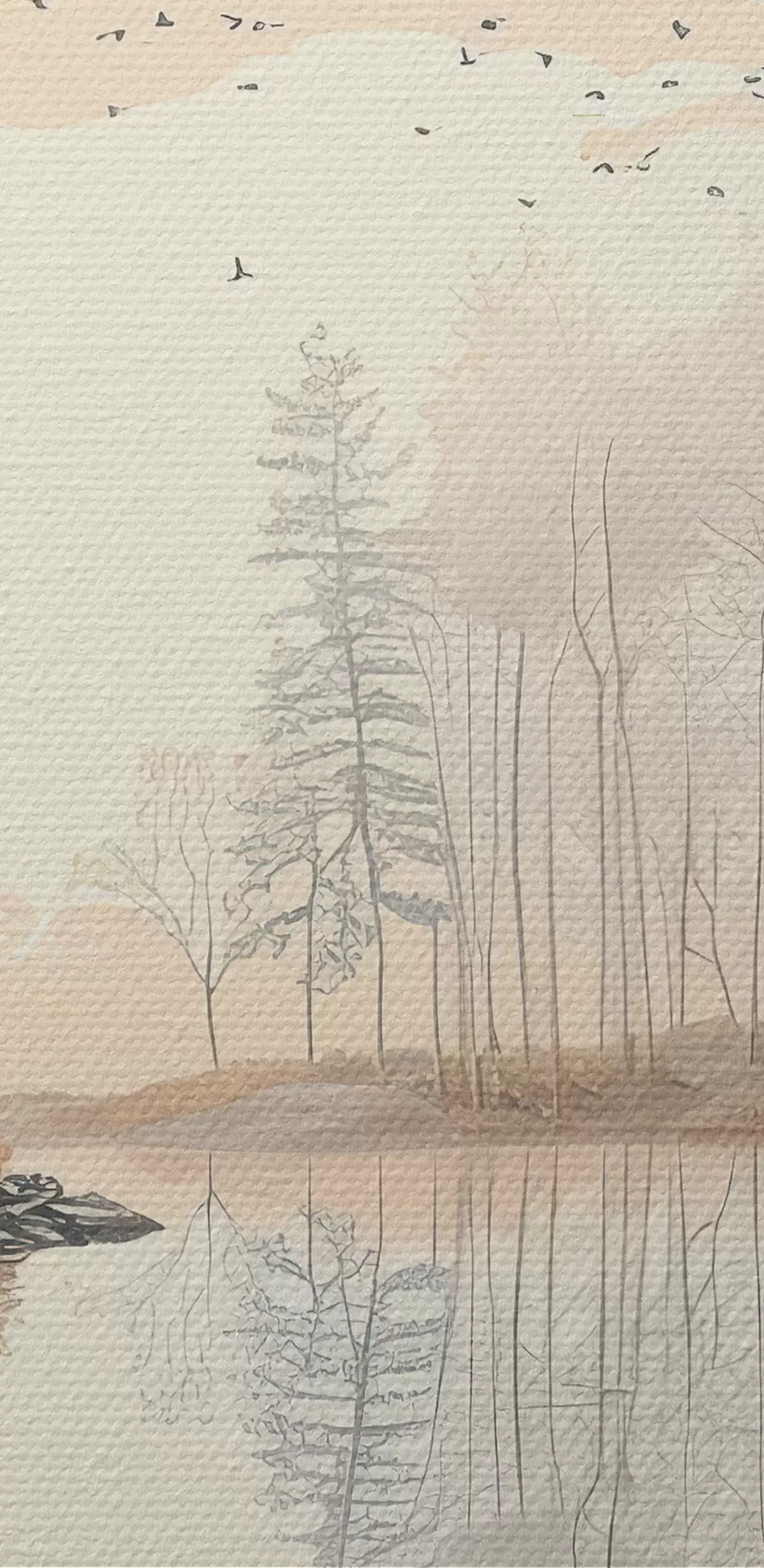 Paveikslas Gražus gamtos peizažas, tvenkinys ir medžiai, laukinė gamta, švelnios pastelinės spalvos Nr s39980