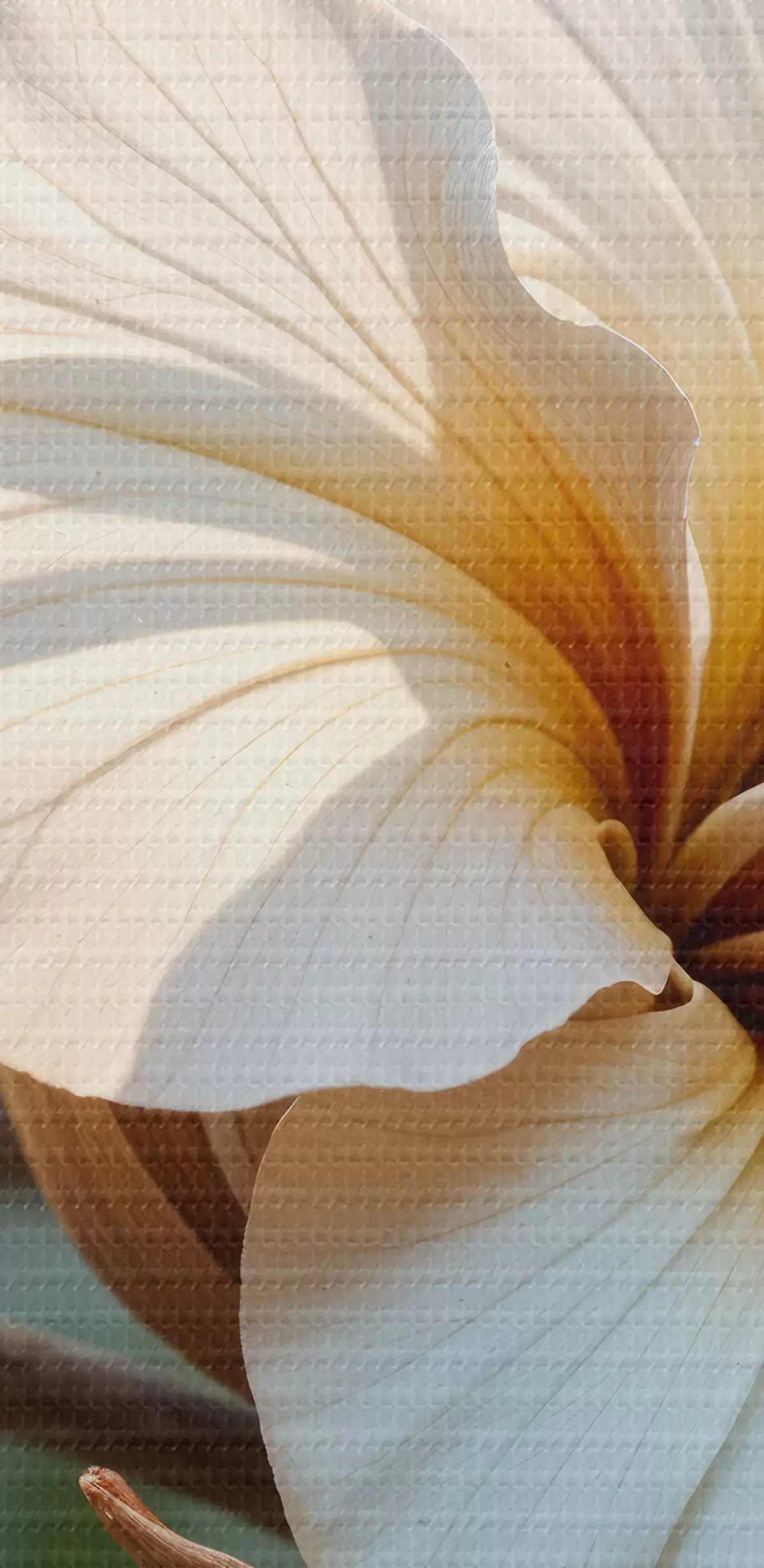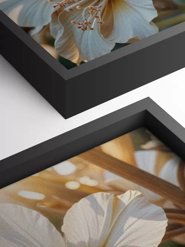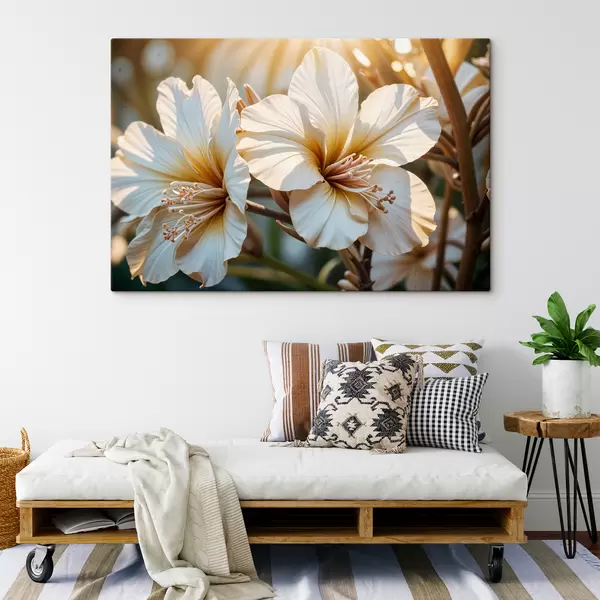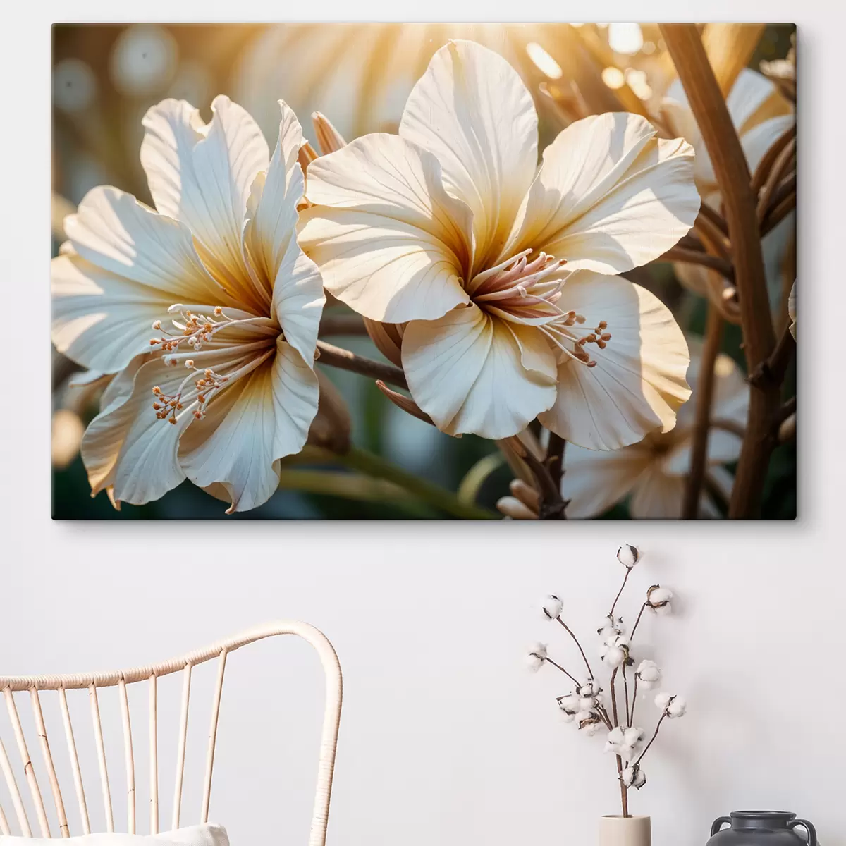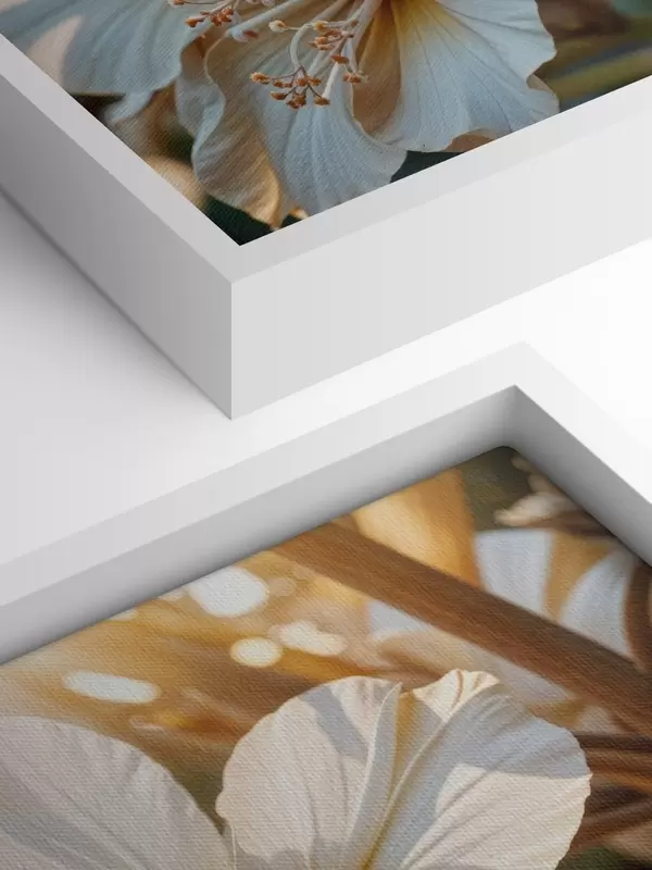 Paveikslas Žydi baltos ir oranžinės hibisko gėlės su švelnaus fokusavimo fonu Nr s40035