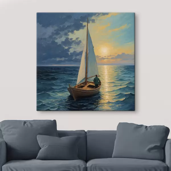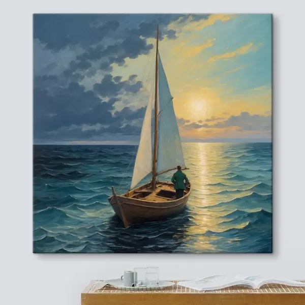 Paveikslas Žmogus plūduriuoja jūroje valtyje Nr s40053