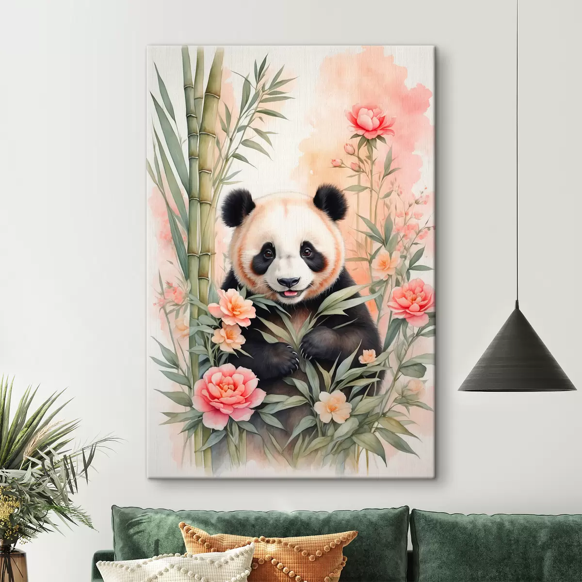 Paveikslas Panda su gėlėmis ir bambuku Nr s40125