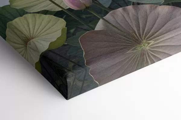 Paveikslas Vešlus tvenkinys, užpildytas ryškiomis rožinėmis ir baltomis lotoso gėlėmis, apsuptas didelių žalių lelijų trinkelių Nr s40145