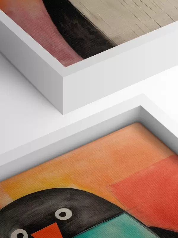 Paveikslas Pingvinas raudonai oranžiniame fone plokščias piešinys Nr s40217