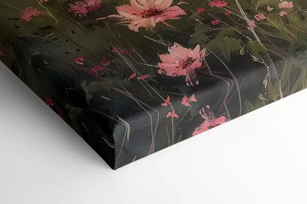 Paveikslas Pieva su rožinėmis gėlėmis, žalia žolė, gamtos peizažas, dangus su debesimis, akrilo piešinys Nr s40234