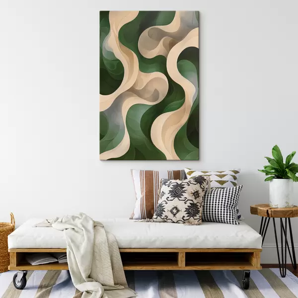 Paveikslas smėlio spalvos žalia abstrakcija Nr s40250