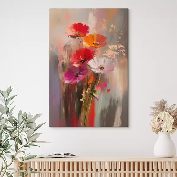 Paveikslas Abstrakčios ryškios gėlės su teptuko potėpiais Nr s40283