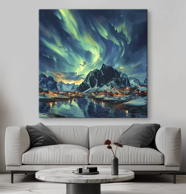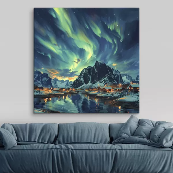 Paveikslas Lofoteno salos, žiemos kaimas, žiemos žiburiai Nr s40299