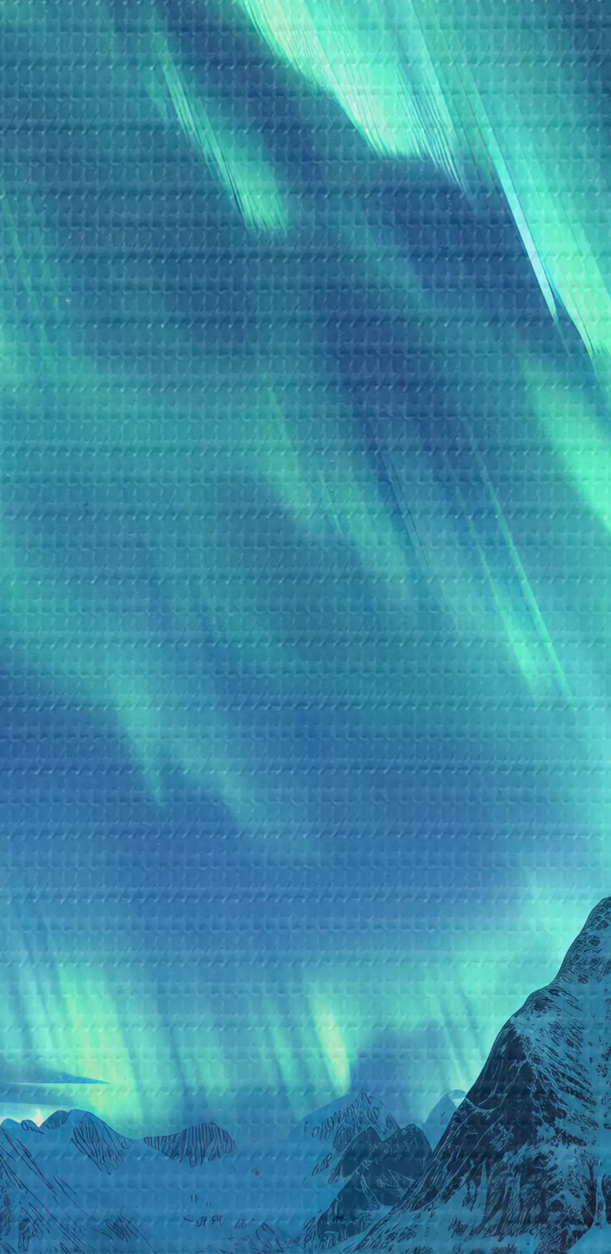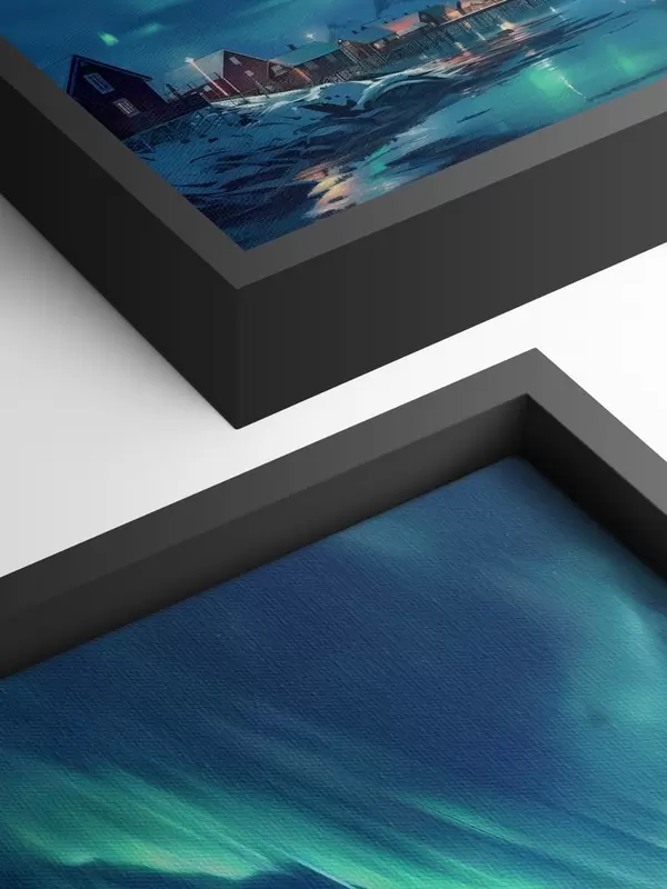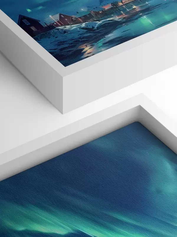 Paveikslas Norvegijos žiemos kaimas, šiaurės pašvaistės, naktinis dangus Nr s40300
